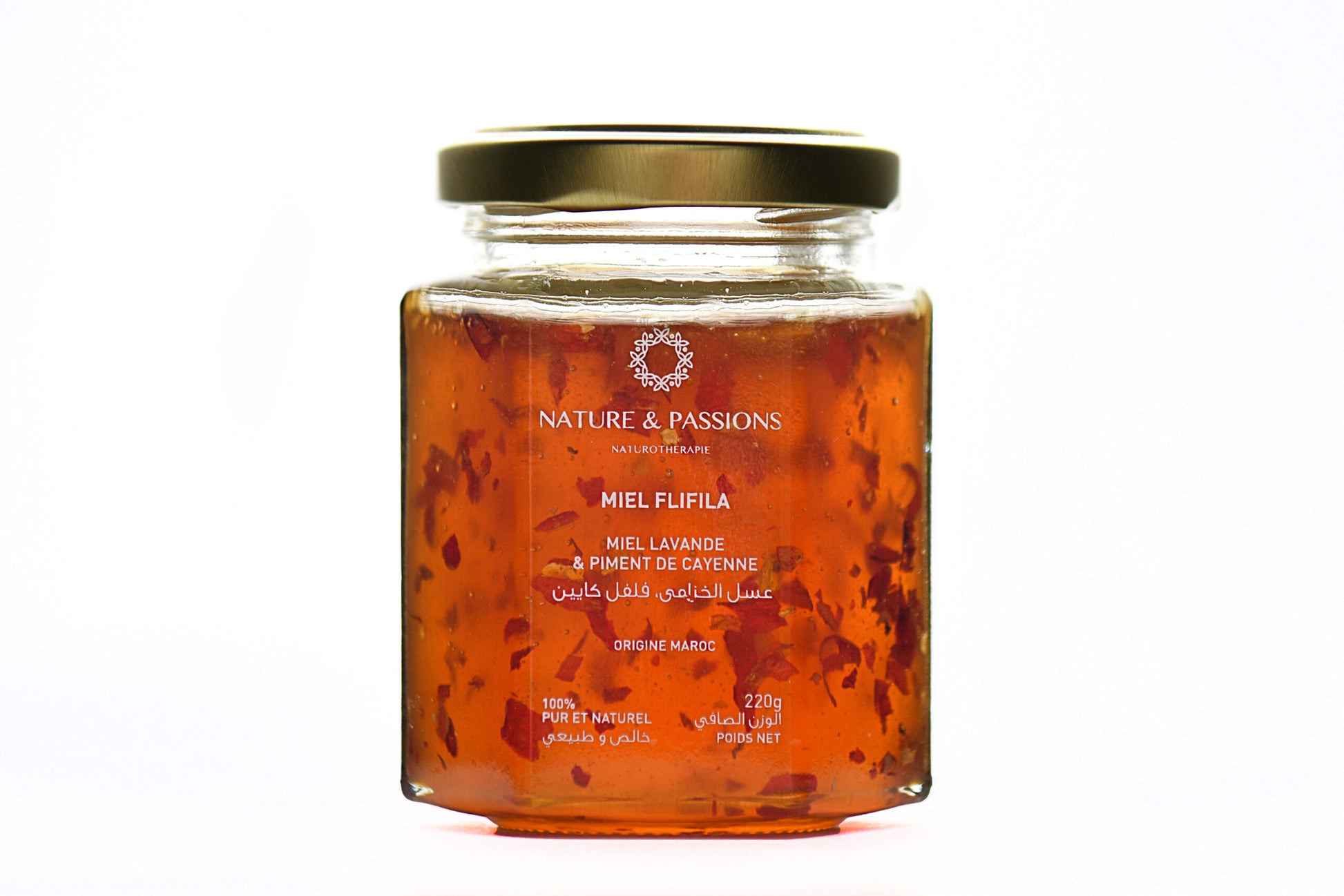 Mélange subtil et raffiné de miel de lavande et de piment de Cayenne.
